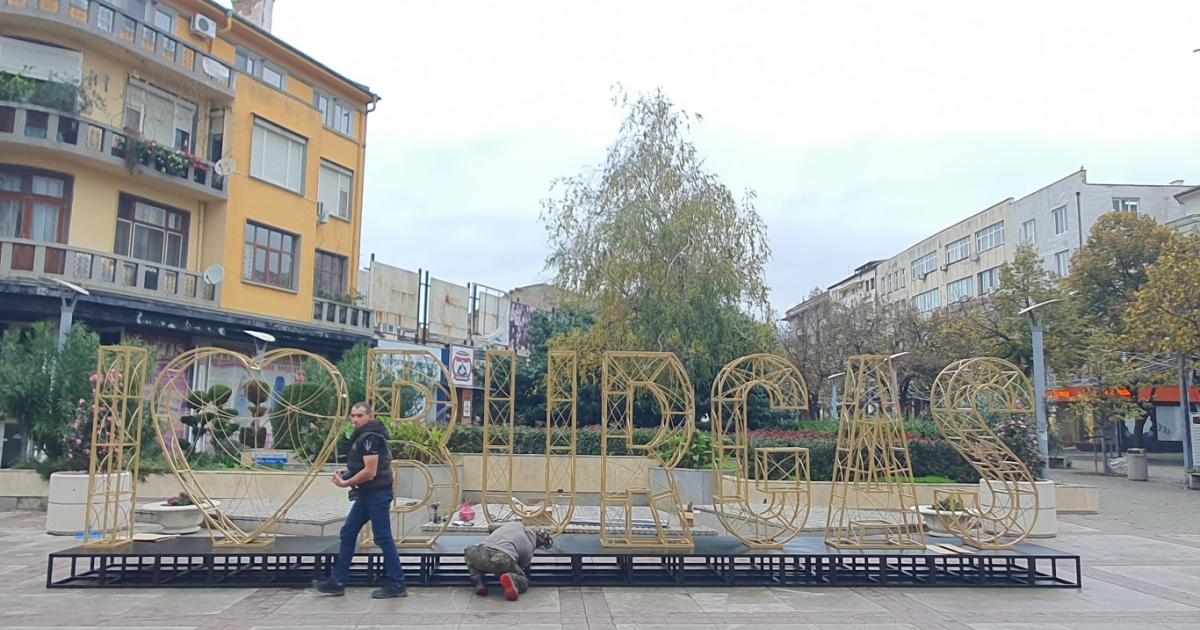 Атрактивен надпис „I LOVE BURGAS“ ще грейне до дни на централния площад „Атанас Сиреков“. В момента той се монтира, но отсега обещава да се превърне в свеж акцент в градската среда през празничните месеци.